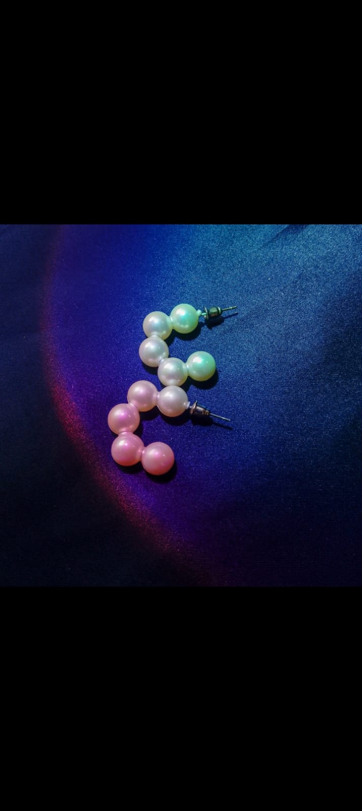Delicate pearl earrings featuring three pearls in soft pastel pink and green hues. These charming earrings blend timeless elegance with understated luxury, perfect for adding a touch of refined sophistication to any look.